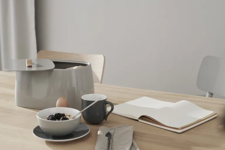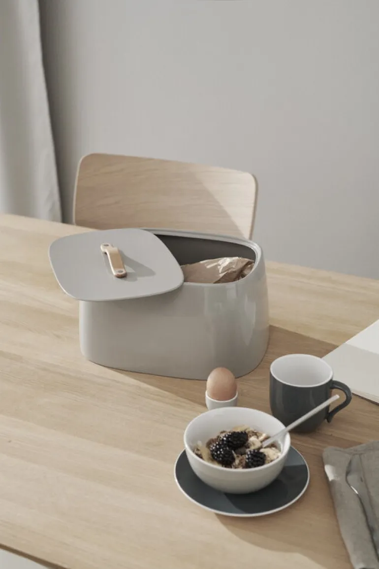 Steltons brödlåda Emma hjälper dig att hålla dina bröd och bullar färska samtidigt som den ger köket en ljuvlig touch. Brödlådan är gjord av stål med ett handtag i bokträ. Brödlådan är designad av HolmbäckNordentoft och ingår i Emma-kollektionen som hämtar inspiration från dansk 1950- och 60-talsdesign. De eleganta och funktionella föremålen i Emma-serien passar utmärkt ihop.