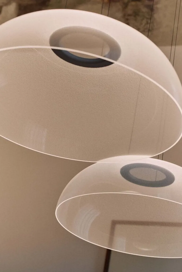 Pendellampan Demi från Stilnovo är full av överraskningar. När den är släckt ser den stora, kupolformade skärmen nästan genomskinlig ut, men när den tänds avslöjar den sina hemligheter. Lampan använder innovativ teknik med tusentals lasergraverade mikromönster som skapar ett mjukt, atmosfäriskt sken. Ljuskällan är diskret placerad i en ring högst upp på armaturen. Designern Mirco Crosatto hämtade inspiration till pendellampan Demi från det ikoniska Pantheon i Rom, där det cirkulära takfönstret badar rummet i ljus på samma sätt som pendellampan Demi gör.