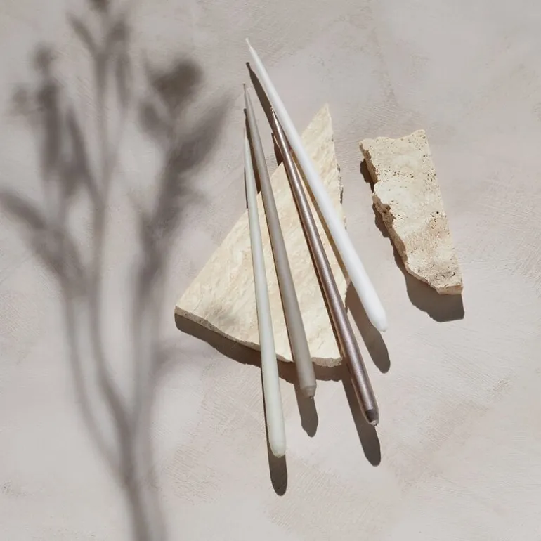 STOFF Nagel by Ester&Erik ljus är handgjorda av ett danskt familjeföretag som heter Ester & Erik. Paketet innehåll sex sandfärgade, avsmalnande ljus som designats för STOFF Nagel-ljushållare.