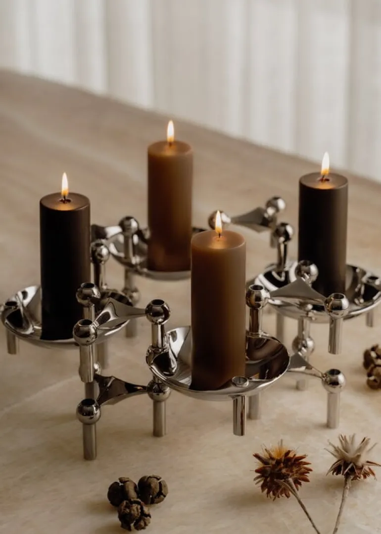 Danska STOFF Copenhagen har återlanserat den eleganta STOFF Nagel-ljushållaren, designad av arkitekten Werner Stoff för metallarbetaren Hans Nagel på 1960-talet. Nagel fick idén till ljushållaren efter att ha fallit i snön under en skidsemester i Alperna. De tre fingerhålen i snön blev senare den triangulära formen för STOFF Nagel. De modulära ljushållarna kan kombineras till vackra, skulpturala konstruktioner som är iögonfallande både med och utan ljus.
