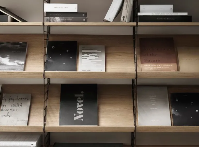 String System är ett flexibelt hyllsystem som den svenska arkitekten Nils Strinning skapade år 1949. De karakteristiska, stegliknande sidopanelerna kan kombineras med hyllor, tidningshyllor, skrivbord, klaffbord, byråer och skåp för att bygga ihop ett system som passar just dina behov. String Systems tidlösa och minimalistiska design passar perfekt i både moderna bostäder och kontor.