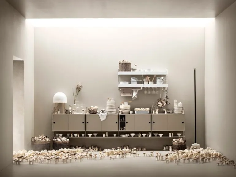 String System är ett flexibelt hyllsystem som den svenska arkitekten Nils Strinning skapade år 1949. De karakteristiska, stegliknande sidopanelerna kan kombineras med hyllor, tidningshyllor, skrivbord, klaffbord, byråer och skåp för att bygga ihop ett system som passar just dina behov. String Systems tidlösa och minimalistiska design passar perfekt i både moderna bostäder och kontor.