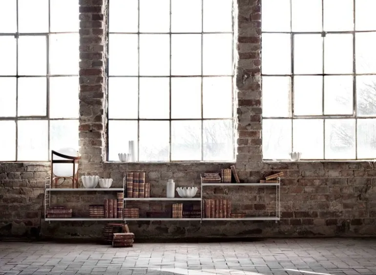 String System är ett flexibelt hyllsystem som den svenska arkitekten Nils Strinning skapade år 1949. De karakteristiska, stegliknande sidopanelerna kan kombineras med hyllor, tidningshyllor, skrivbord, klaffbord, byråer och skåp för att bygga ihop ett system som passar just dina behov. String Systems tidlösa och minimalistiska design passar perfekt i både moderna bostäder och kontor.