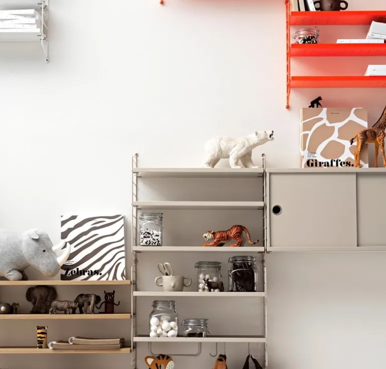 De stegliknande sido- och golvpanelerna i String System kan kombineras med hyllor, tidningshyllor, skrivbord, klaffbord, byråer och skåp för att bygga ihop en lösning som passar just dina behov. Det smarta systemet designades av Nils Strinning 1949. String Systems tidlösa och minimalistiska design passar perfekt i både moderna bostäder och kontor.