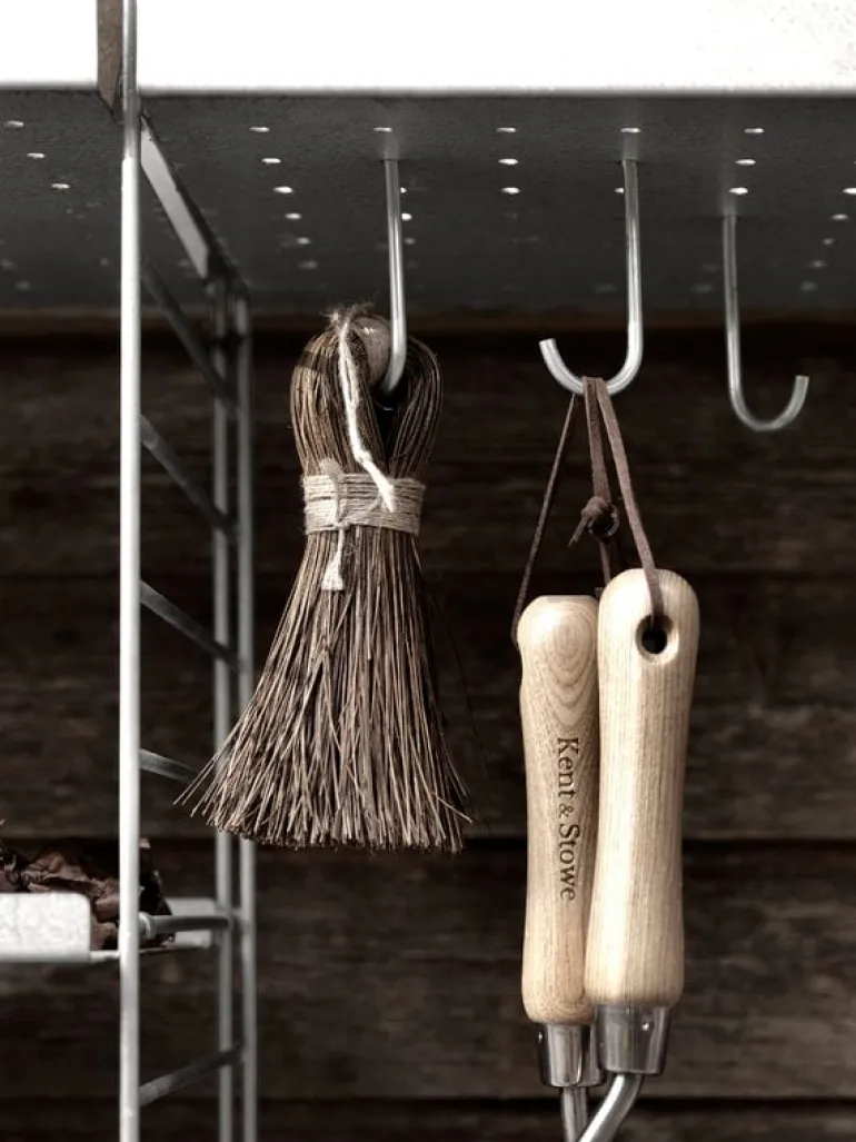 String-krokarna fästs på String-metallhyllorna och är perfekta att hänga upp kläder och köksredskap på. En uppsättning med fem metallkrokar.