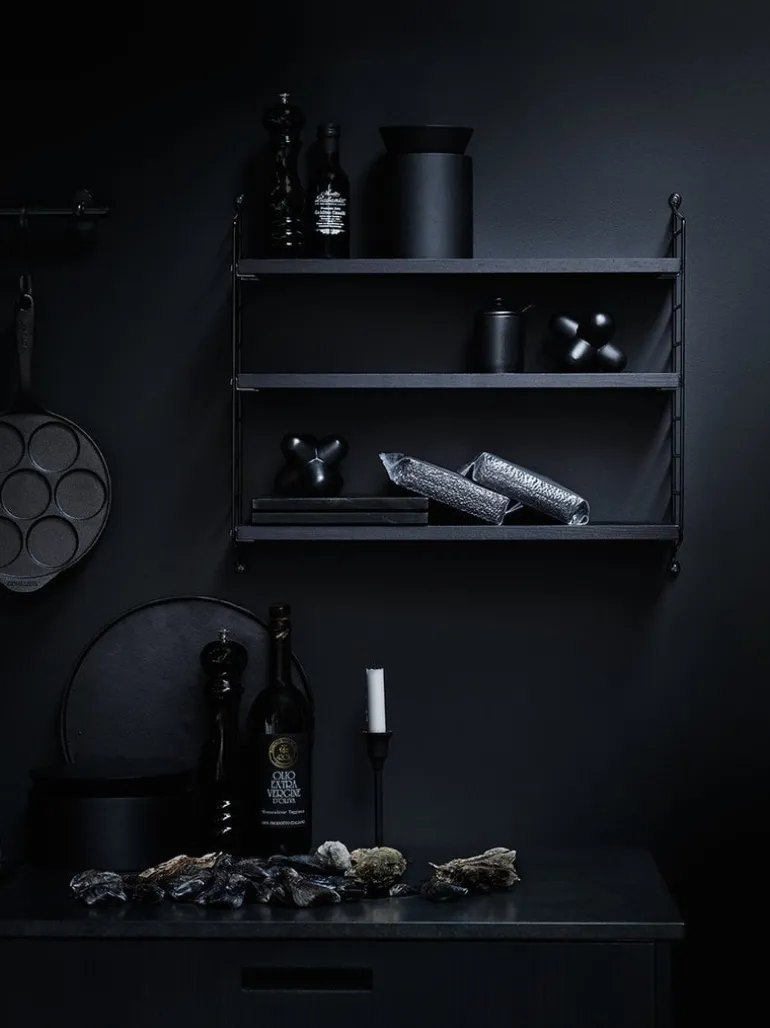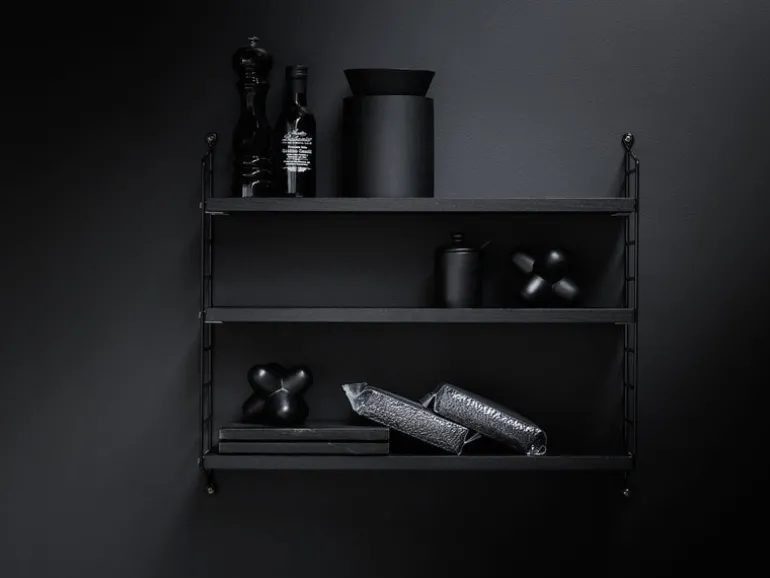 String Pocket är en kompakt och elegant hylla för böcker, samlarobjekt och andra småting. String Pocket lanserades 2005 av den svenska tillverkaren String, och ingår i den populära kollektionen som skapades av Nils Strinning år 1949. Den minimalistiska designen består av tre hyllplan och två stegliknande sidopaneler, som även kan slås ihop till större enheter, både vertikalt och horisontellt. String Pocket finns i ett brett spektrum av färger, och kan användas till en rad olika ändamål och på många olika platser.