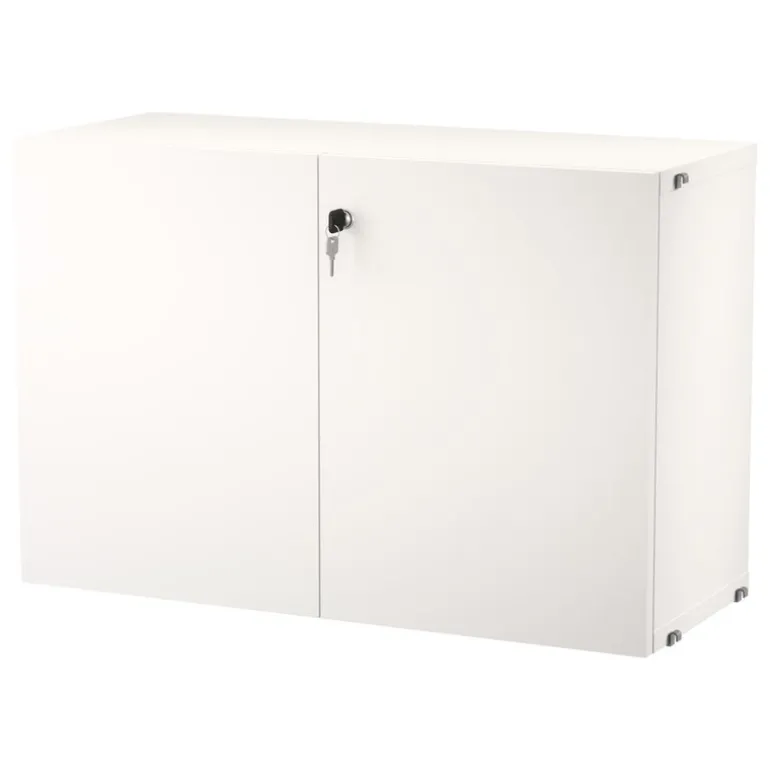 Ibland är hemligheter så privata att ägodelarna behöver förvaras bakom låsta dörrar. Där kommer String skåp med två dörrar och lås in i bilden! Den ena dörren låser säkert, medan den andra öppnas enkelt med en knapptryckning. Det låsbara skåpet är tillverkat i stål och är kompatibelt med String Systems golv- och sidopaneler med en bredd på 30 cm.