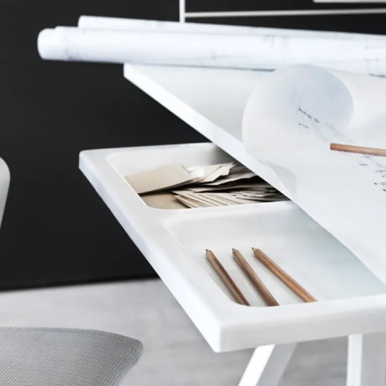 Lådan består av två rymliga fack där du kan förvara pennor, papper och alla andra små skrivbordsartiklar.