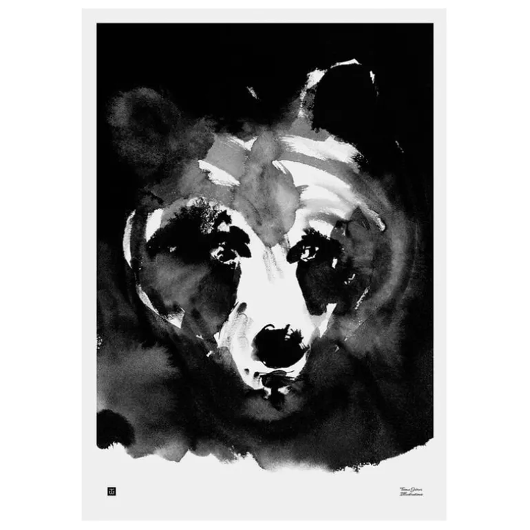 Teemu Järvis Mysterious Bear poster visar det majestätiska djuret, skogens konung, när det tittar fram ur skuggorna. Inom vissa kulturer anses björnen vara ett heligt, nästan magiskt, djur som föddes i himlen.