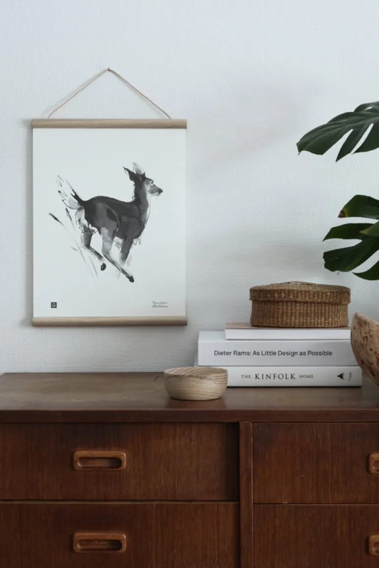 Teemu Järvis poster White-Tailed Deer ingår i posterserien Forest Greetings, som innefattar konstnärens slutsålda konsttryck. Postern är offsettryckt i Finland på 150 g obestruket naturvitt papper. Fullända posterns naturliga utseende med Teemu Järvis träram som säljs separat.