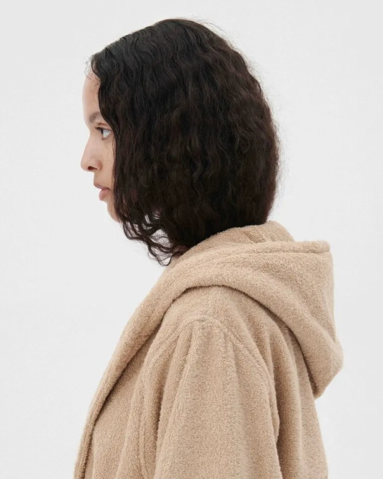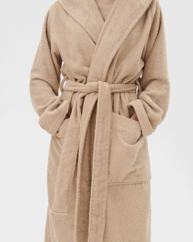 Teklas badrock med huva ger en känsla av bekvämlighet och lyx och passar perfekt efter bad eller bastubad. Den Oeko-Tex-certifierade badrocken är tillverkad av extrakammad ekologisk bomull, vilket gör den särskilt mjuk och slitstark samt ger den bra uppsugningsförmåga. Unisex-badrocken är något stor i storleken, vilket gör den bekväm och avslappnad att ha på sig. Dessutom håller den stora huvan dig varm när du själv håller på att bli sval.