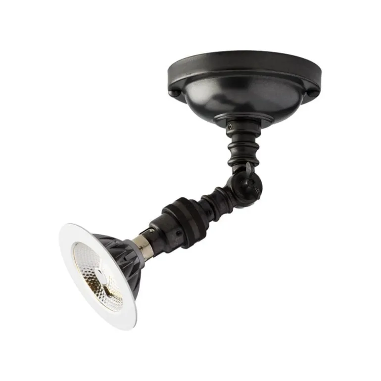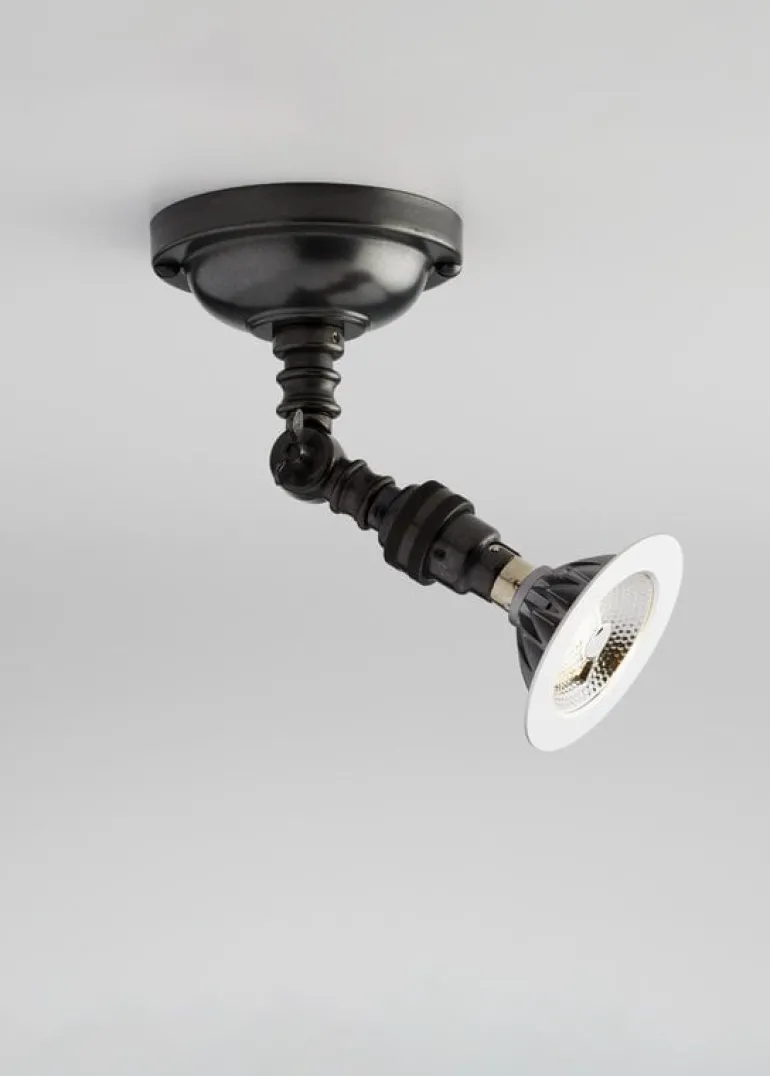 Taklampan Lilley Spot On Box från Tekna kombinerar en vintageestetik med modern teknik. Den justerbara strålkastaren kan rotera 350 grader och lutas 90 grader, vilket gör den idealisk för alla torra inomhusutrymmen där du vill rikta ljuset precis dit du vill. Den här strålkastaren i mässing är hårdtrådad för direkt anslutning till vägguttaget och har en dimbar LED-lampa som ljuskälla.