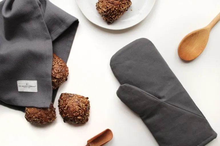 The Organic Companys kökshandduk med elegant vävning i fiskbensmönster är gjord av slitstarkt och absorberande ekologiskt bomull. Den 86 x 53 cm stora handduken har en praktisk ögla för upphängning.