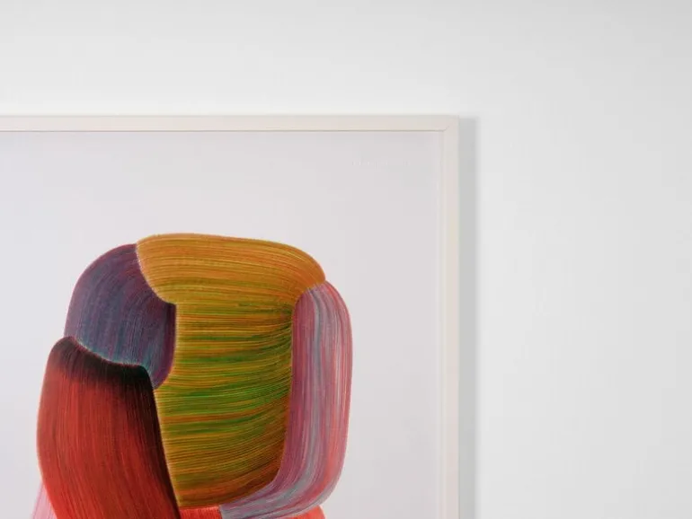 Affischen Drawing 18 är litograferad på Fedrigoni Splendorlux-papper. Med denna teknik framstår den färgade bläcket som matt på papperets glansiga yta, vilket liknar Bouroullecs verkliga teckningsteknik.