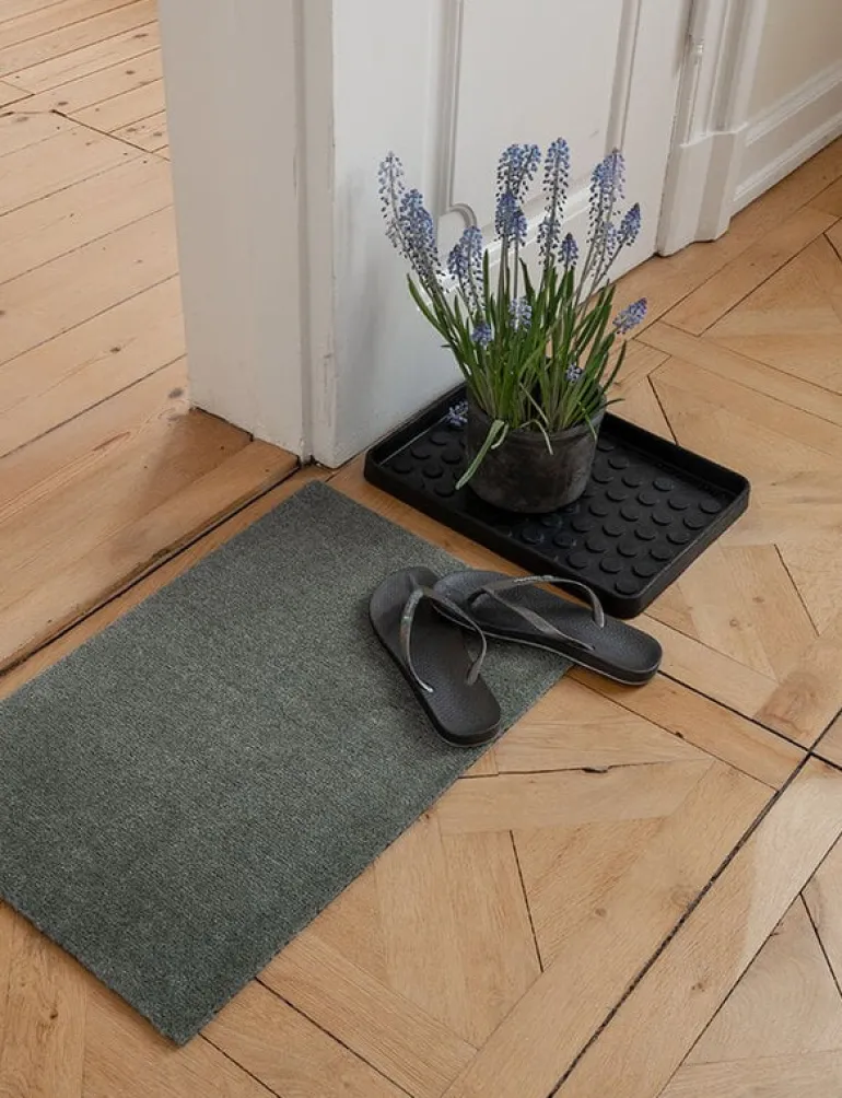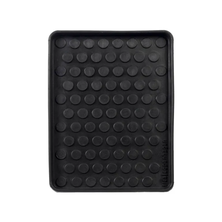 Tica Copenhagens skobricka Dot är ett vackert och praktiskt komplement som du kan ha i hallen eller till och med använda utomhus – den rejäla gummimattan är avsedd både för inomhus- och utomhusbruk. Skomattan Dot tar hand om dina blöta och leriga skor och håller hallen ren – den lilla skobrickan rymmer ett par vuxenskor eller två par barnskor. Den fiffiga brickan passar perfekt när du behöver torka våta accessoarer av olika slag, som paraplyer eller hundkoppel.