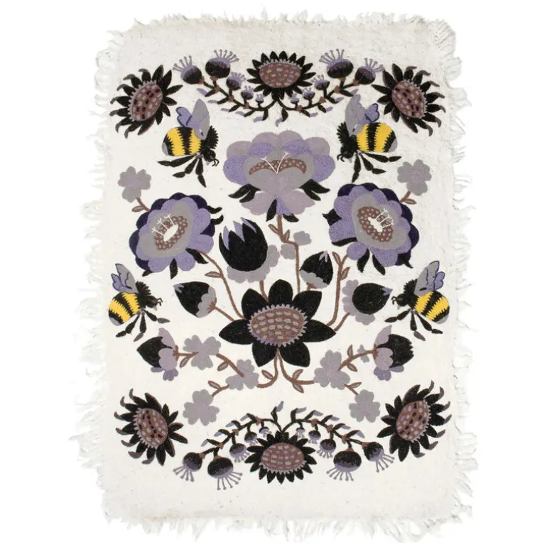 Tikaus Bombroo-matta är ett andlöst konstverk, filtat och broderat för hand. Dessa unika mattor är tillverkade av ofärgad ull och bomull, och den sagolika bilden designad av den finska konstnären Klaus Haapaniemi skapas med hjälp av en traditionell indisk broderiteknik som kallas Ari. Bombroo-mattan får sitt namn från det hindi-språkiga ordet bombroo, vilket betyder humla. Den uttrycksfulla mattan skulle också se fantastisk ut hängande på väggen.
