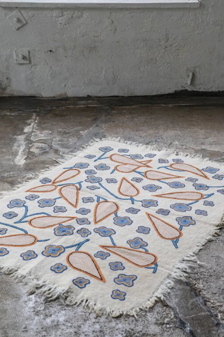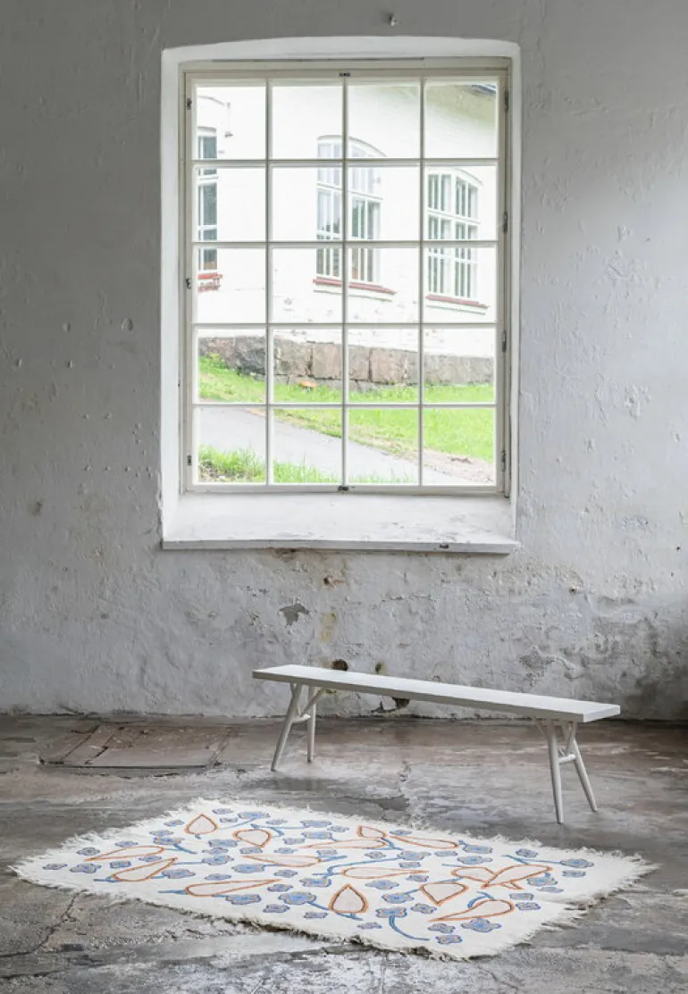 Tikaus Kasbah-matta är ett fantastiskt konstverk, tovat och broderat för hand. Det sagolika mönstret, designat av den finska textil- och tryckdesignern Erja Hirvi, skapas med hjälp av en traditionell indisk broderiteknik som kallas Ari. Den uttrycksfulla Kasbah-mattan skulle också se fantastisk ut upphängd på väggen.