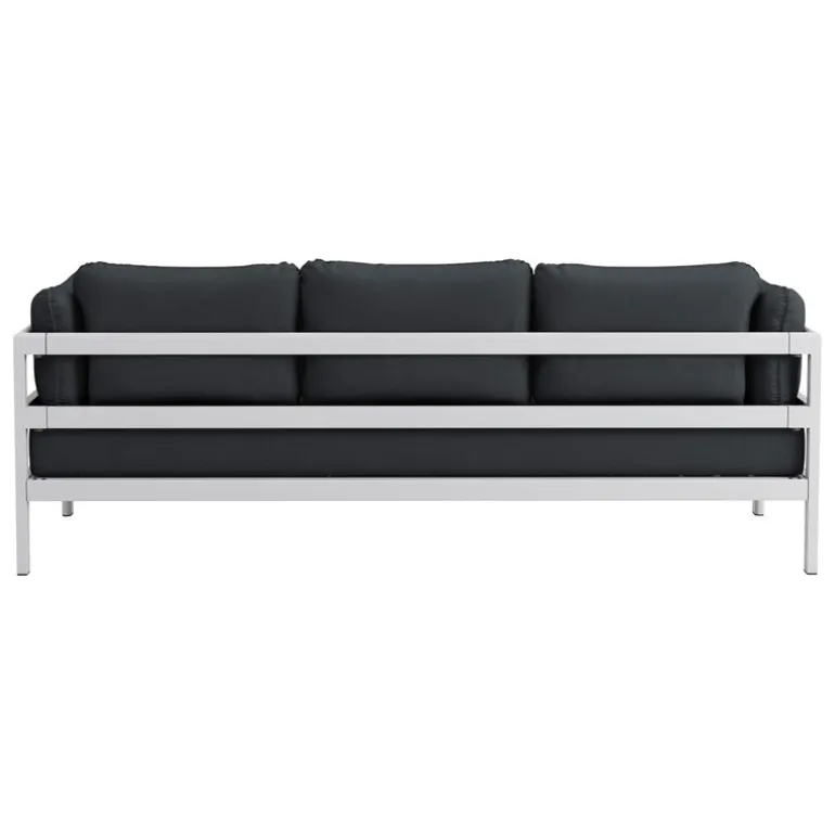 Tillverkad i Europa, är Easy-soffan konstruerad av en enkel stålram – som är praktiskt taget oförstörbar – och tjocka kuddar klädda med Gabriels högkvalitativa tyg i återvunnen polyester. De avtagbara, maskintvättbara överdragen är tillverkade av återvunna plastflaskor, och textilen har tilldelats både Oeko-Tex 100-märkningen och EU Ecolabel. Eftersom de olika delarna av soffan inte är sammanfogade med lim eller häftstift, kan de lätt monteras ned och återvinnas när de till slut når slutet av sin livscykel.