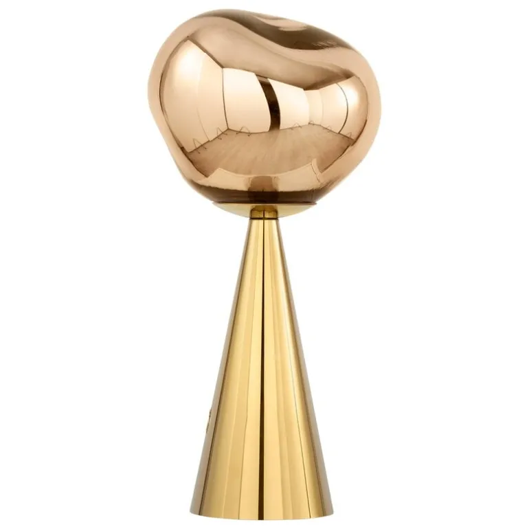 Tom Dixons fascinerande bordslampa Melt är formgiven i samarbete med det svenska designkollektivet Front. När Melt är släckt blir ytan glänsande och speglande, och oregelbundenheterna reflekterar ljuset på väldigt spännande sätt. Bara när den är tänd eller i fullt dagsljus blir lampan genomskinlig och skapar en illusion av varmt, smält glas.