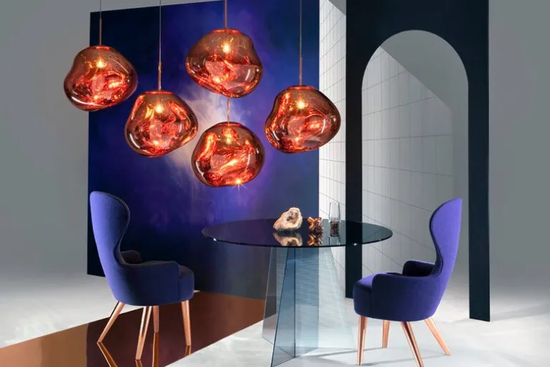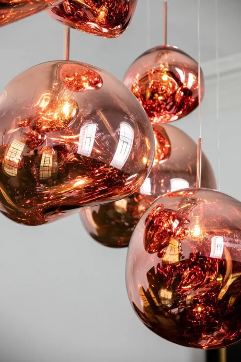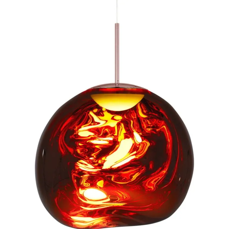 Tom Dixons fascinerande Melt-pendellampa designades i samarbete med det svenska designkollektivet Front. När den är avstängd har Melt en glänsande spegelglans och den ojämna ytan reflekterar ljuset på det mest spännande sättet. Först när den är påslagen eller i fullt dagsljus blir pendeln genomskinlig och skapar en illusion av hett smältande glas. En grupp av Melt-lampor är en riktig showstopper, men även en enda pendel fungerar som en fängslande inredningsdetalj.
