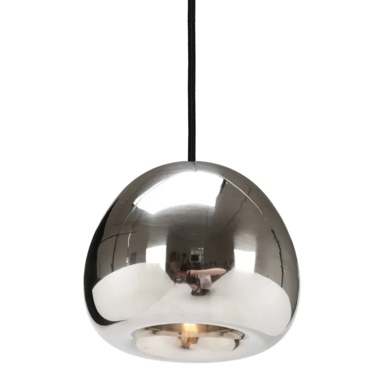 Tom Dixons Void Mini är en rundad, futuristisk ljuskälla med sin ljuskälla dold inuti sin glänsande metallskärm. Med tillräckligt mycket arbete och tålamod kan även basmetaller behandlas till samma glans som ädla metaller, och i produktionen av Void har detta tagits till sin spets: armaturens kropp är utskuren från en metallplåt, pressad, spunnen och lödd till sin dubbelväggiga form, sedan polerad och lackerad för maximal glans.