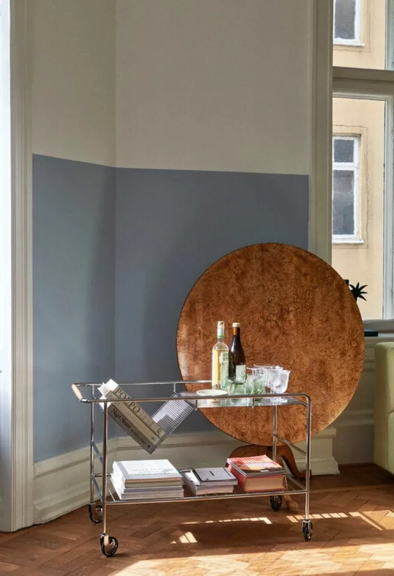 &Traditions vagn Alima NDS1 är en strömlinjeformad och multifunktionell förvaringsenhet på hjul som fungerar lika bra på kontoret som en serveringsvagn. Alima-vagnen har en underhållsfri stålram med en avtagbar träbricka och ett handtag flätat i läder som ger en varm kontrast till designen.