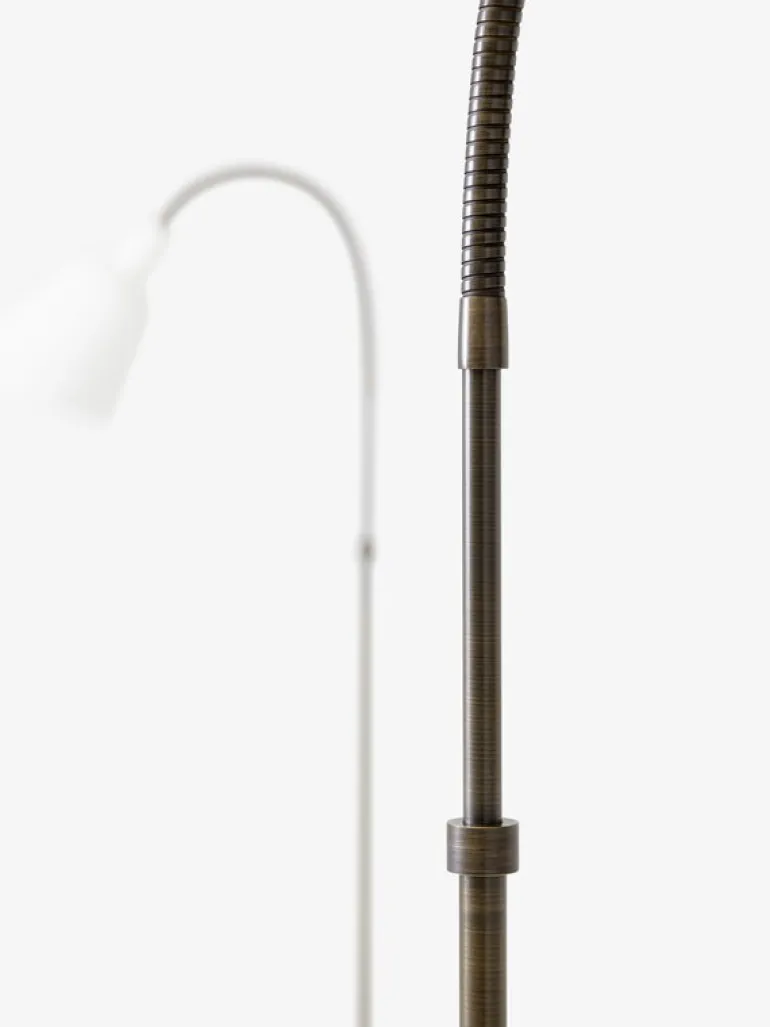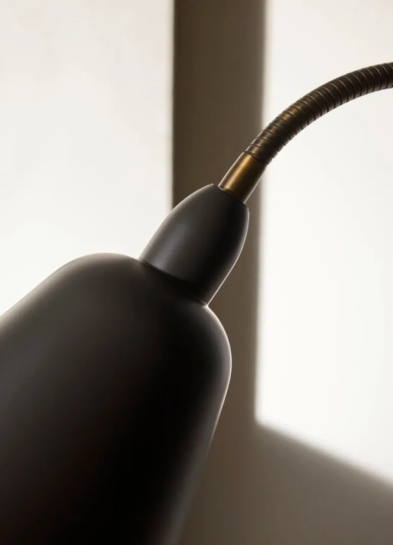 Golvlampan Bellevue AJ7, perfektionerad med bronsfärgad mässing, är en del av &Tradition’s 120-årsjubileumskollektion, som hyllar Arne Jacobsen och hans djupgående inflytande på dansk design.