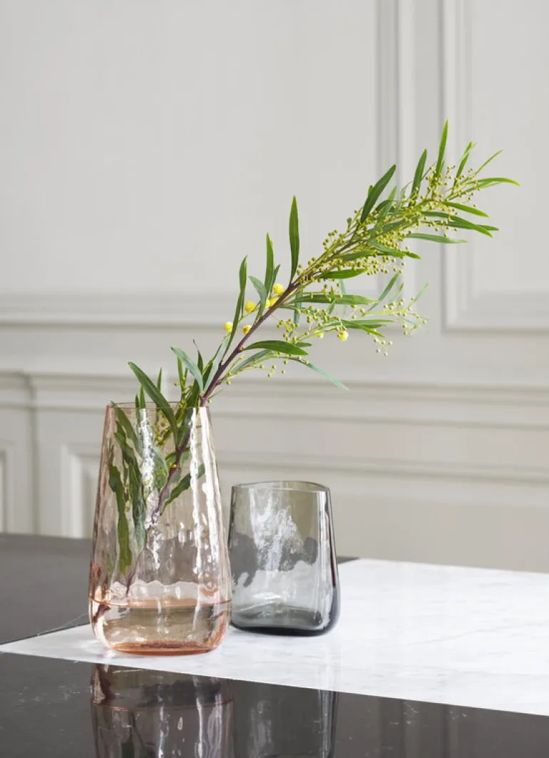 Glasvasen Collect, från &Tradition, charmar med mjuka linjer och en fascinerande struktur. Vasen är munblåst in i en temperaturkontrollerad form, vilket ger den ett fascinerande, nästan vätskeliknande utseende och en underbart unik karaktär. Vasens organiska form kontrasteras och betonas av dess skarpskurna kant.