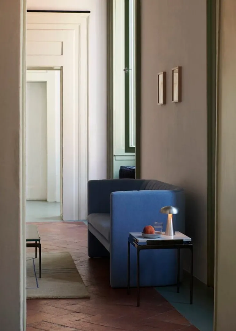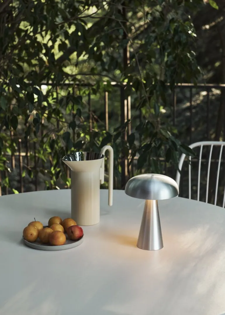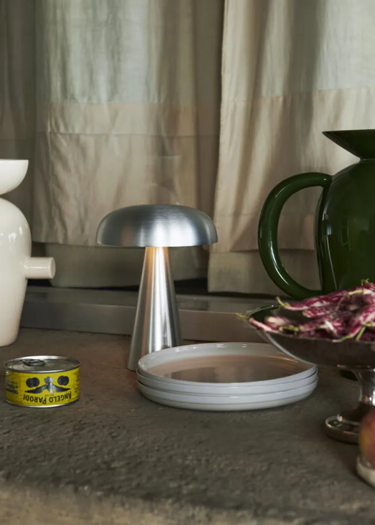 &Tradition’s Como SC53 är en uppladdningsbar, bärbar bordslampa designad av Space Copenhagen. Como-lampan är tillverkad av aluminium och består av en konformad bas med en bred skärm som riktar ljuset nedåt och åt sidorna. Tack vare den 3-nivåiga dimmern kan Como användas som läslampa eller stämningsbelysning.