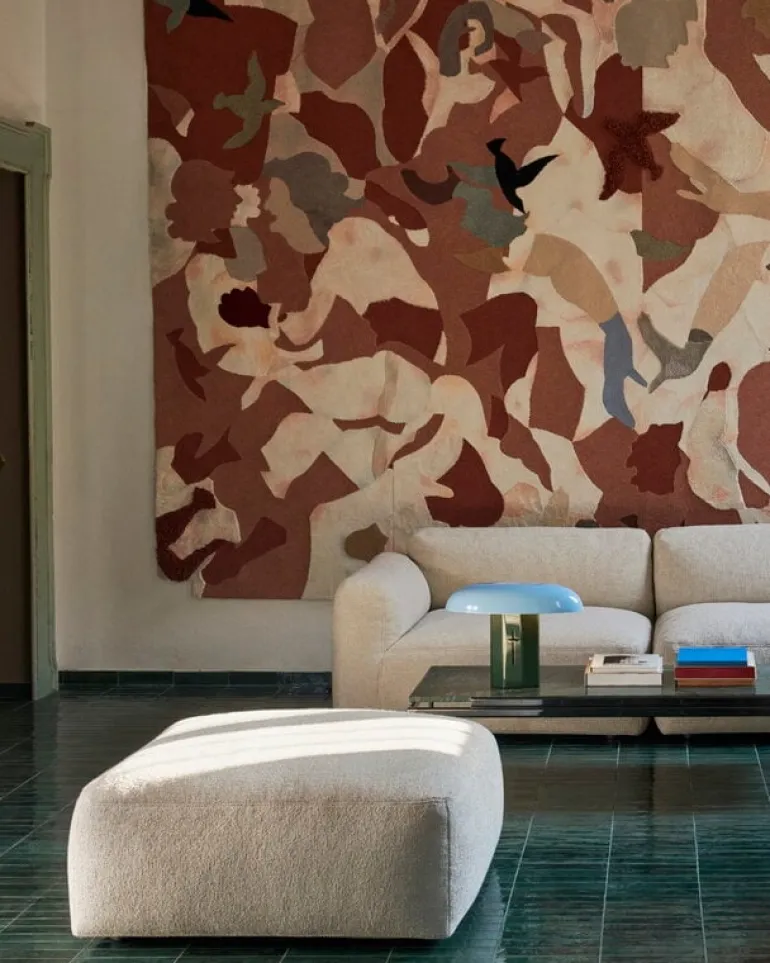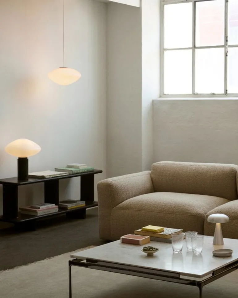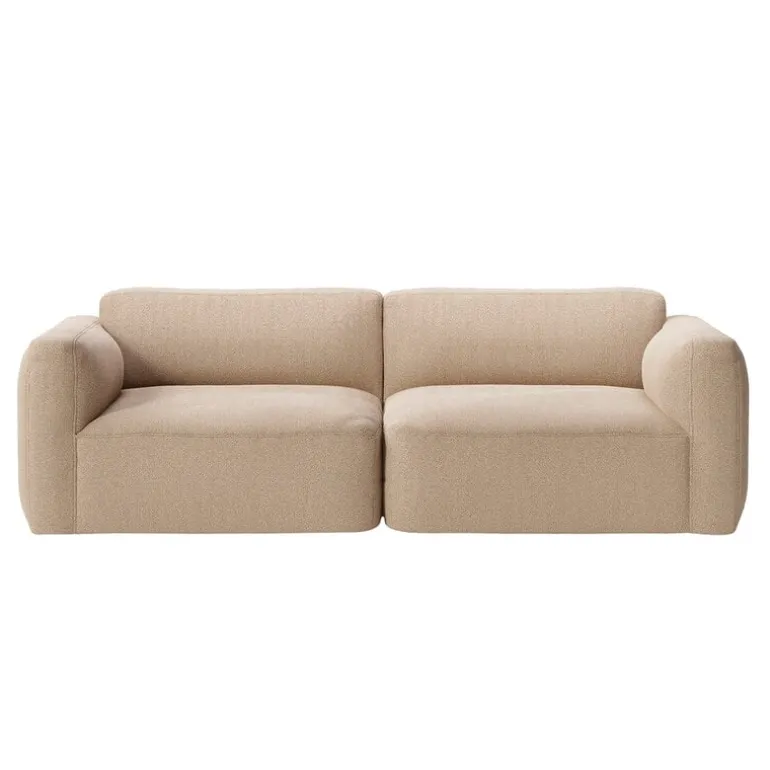 Modulsoffan Mellow, från &Tradition, ger Develius soffkollektion, av Edward van Vliet, inbjudande mjuka former. Medan den behåller den ursprungliga kollektionens flexibla moduldesign har Mellow uppgraderade, mjukare kuddar med avtagbara överdrag. Denna tvåsitsiga modulsoffa är klädd i Dedar:s rikt texturerade Karakorum bouclé-tyg, vilket ger soffan en ullig, lockig finish.