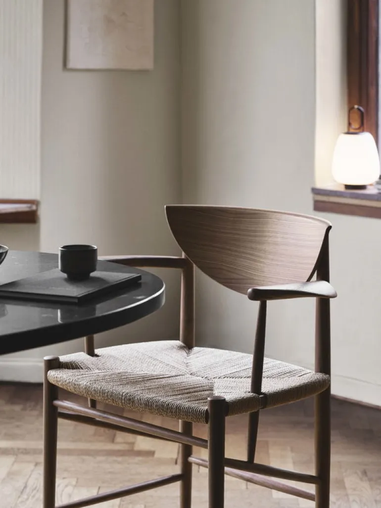 &Traditions Drawn-stol är en vacker pjäs från dansk design från mitten av århundradet. Stolen tillverkas av massivt trä med ett charmerande handvävt säte i papperssladd och karaktäriseras av sitt halvmåneformade ryggstöd och sina diagonalt placerade hängslen. Naturliga material och traditionella tekniker lämnade stolen med en ärlig ödmjuk känsla som gör att Drawn enkelt kan passa in i både moderna och klassiska interiörer. Drawn-stolen designades av Hvidt & Mølgaard 1956.