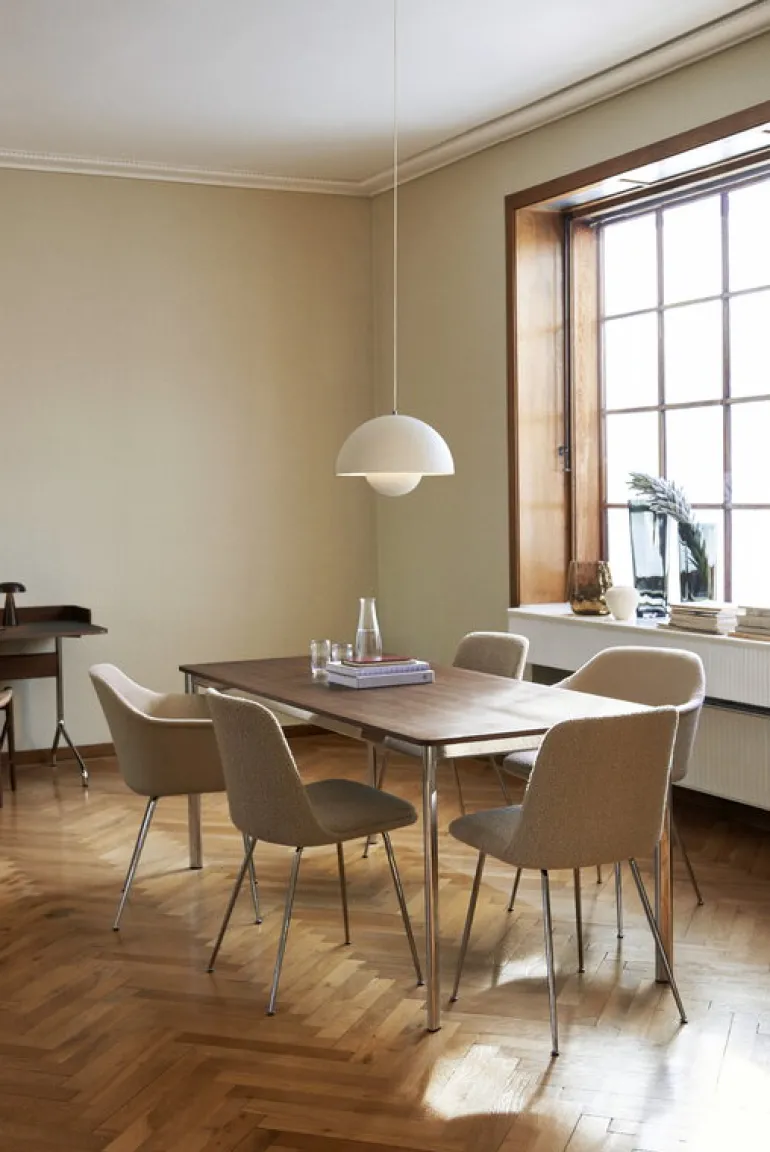 Drip-bordet, designat av Hee Welling för &Tradition, är ett elegant mångsidigt möbel som är skapat för att tåla även tung användning. Bordsskivan är belagd med ett slitstarkt nanolaminat som inte bara är reptåligt utan också lätt att hålla rent – ytan motstår även fingeravtryck. Skivan bärs upp av en enkel metallram tillverkad av 80 % återvunnen aluminium.