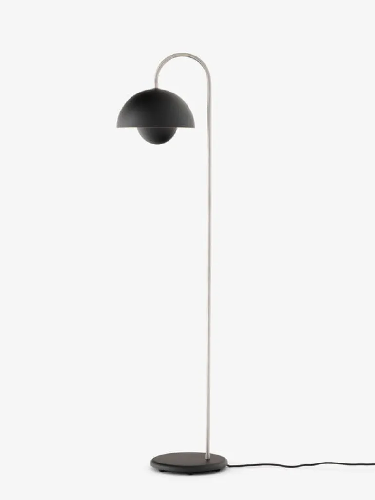Silhuetten av lampan Flowerpot skapas av två halvklot vända mot varandra, som låter ljuset reflekteras ner på ett mjukt och behagligt sätt. Golvlampan Flowerpot står på en likaledes halvklotformad bas och gör ett distinkt blickfång även i vardagsrummet, sovrummet eller hemmakontoret.
