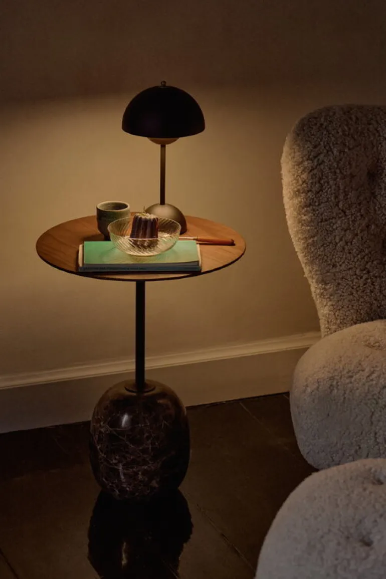 Bärbara Flowerpot VP9, från &Tradition, är en sladdlös version av den ikoniska bordslampan Flowerpot, som designats av Verner Panton. VP9 är något mindre än den ursprungliga bordslampan vilket gör den enklare att bära med sig dit den behövs. Lampan kommer med en USB-sladd för laddning och har ett batteri som håller i 11 timmar på en laddning. I och med att den är sladdlös kan du med bordslampan VP9 skapa en mysig atmosfär både inomhus som utomhus, och den har också en touch-dimmer med tre nivåer.