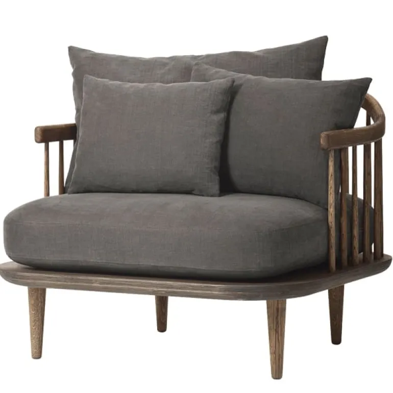 Den rymliga fåtöljen Fly SC1 från &Tradition representerar välbekanta element i traditionell dansk design, men lyckas ändå vara något helt nytt. Fåtöljen Fly, som har formgivits av Space Copenhagen, är tillverkad i ek. Kuddarna är klädda i tyg av en blandning av bomull och linne. De stora, lösa ryggdynorna kan arrangeras efter tycke och smak. Fly-kollektionens lätta utseende och tidlösa känsla gör att den går väldigt bra ihop med modern inredning.