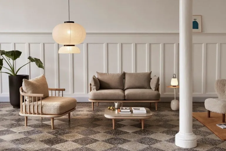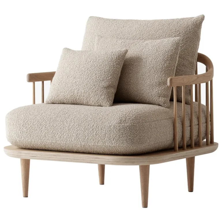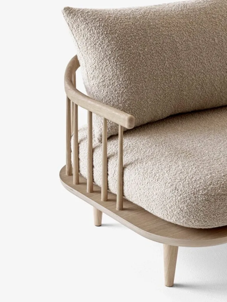 Den rymliga loungefåtöljen Fly SC1 från &Tradition representerar bekanta element från det traditionella danska designarvet, men lyckas ändå vara något helt nytt. Loungefåtöljen Fly, designad av Space Copenhagen, är tillverkad av ek och kuddarna är klädda i ett högkvalitativt ullblandat tyg. De stora, lösa ryggkuddarna kan arrangeras enligt användarens önskemål. Fly-kollektionens lätta utseende och tidlösa känsla gör den väl lämpad för alla moderna interiörer.