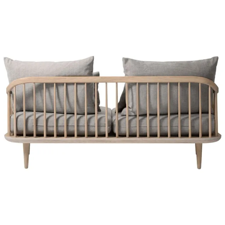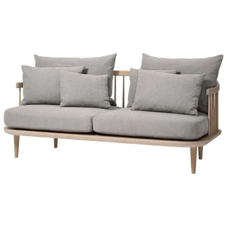 Soffan Fly SC2 från &Tradition representerar välbekanta element i traditionell dansk design, men lyckas ändå vara något helt nytt. Soffan Fly har formgivits av Space Copenhagen, och är tillverkad i massiv ek och ekfaner. Kuddarna är klädda i tyg av en blandning av bomull och linne. De stora, lösa ryggdynorna kan arrangeras efter tycke och smak. Fly-kollektionens lätta utseende och tidlösa känsla gör att den går väldigt bra ihop med modern inredning.