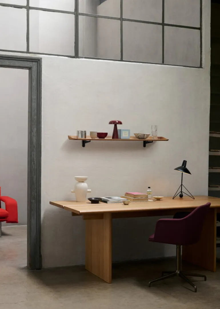 &Traditions hylla Guild HM15 är en mångsidig förvaringslösning för sovrum, vardagsrum, hallar och kök. Hyllan designades av Peter Hvidt 1951 och dess tidlösa, minimalistiska form smälter sömlöst in i dagens moderna inredningar. Den danske arkitekten och designern hämtade inspiration till hyllan Guilds graciösa, böjda design från de slingrande stigarna i trädgården runt hans hem. Hyllan är tillverkad av certifierat, naturligt trä och ger en varm, organisk touch till alla rum. Den är perfekt för att visa upp dina vackraste prydnadsföremål, men är lika fängslande när den står tom och låter sin eleganta form tala för sig själv.