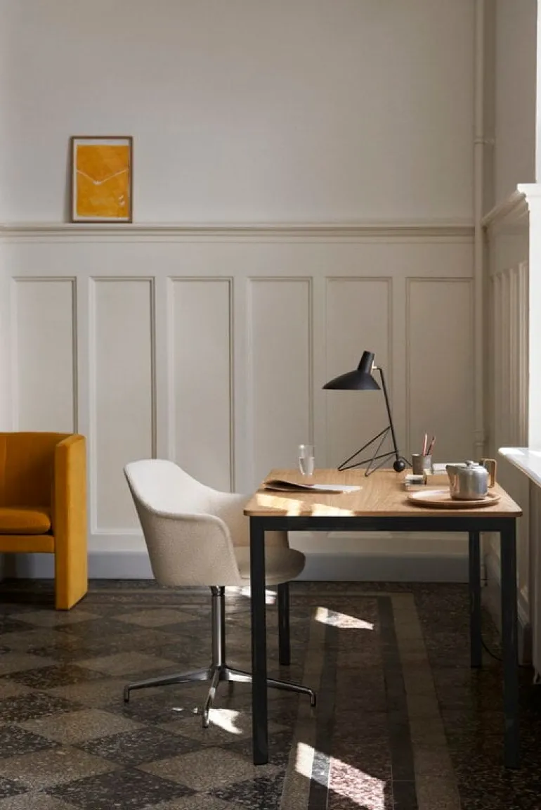 Designstudion Space Copenhagen designade Loafer-kollektionen för lobbyn i Köpenhamns legendariska SAS Royal Hotel som Arne Jacobsen designat. Space Copenhagens mål var att skapa en möbel som skulle skapa en intim känsla i det stora, öppna utrymmet. Den eleganta kollektionen kompletterar hotellets interiör på ett härligt sätt, och dess smidiga, funktionella design är även lämplig för privata hem.