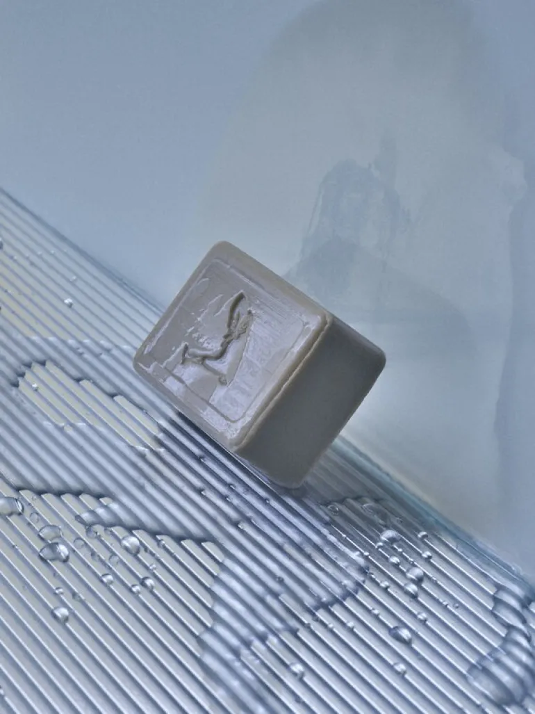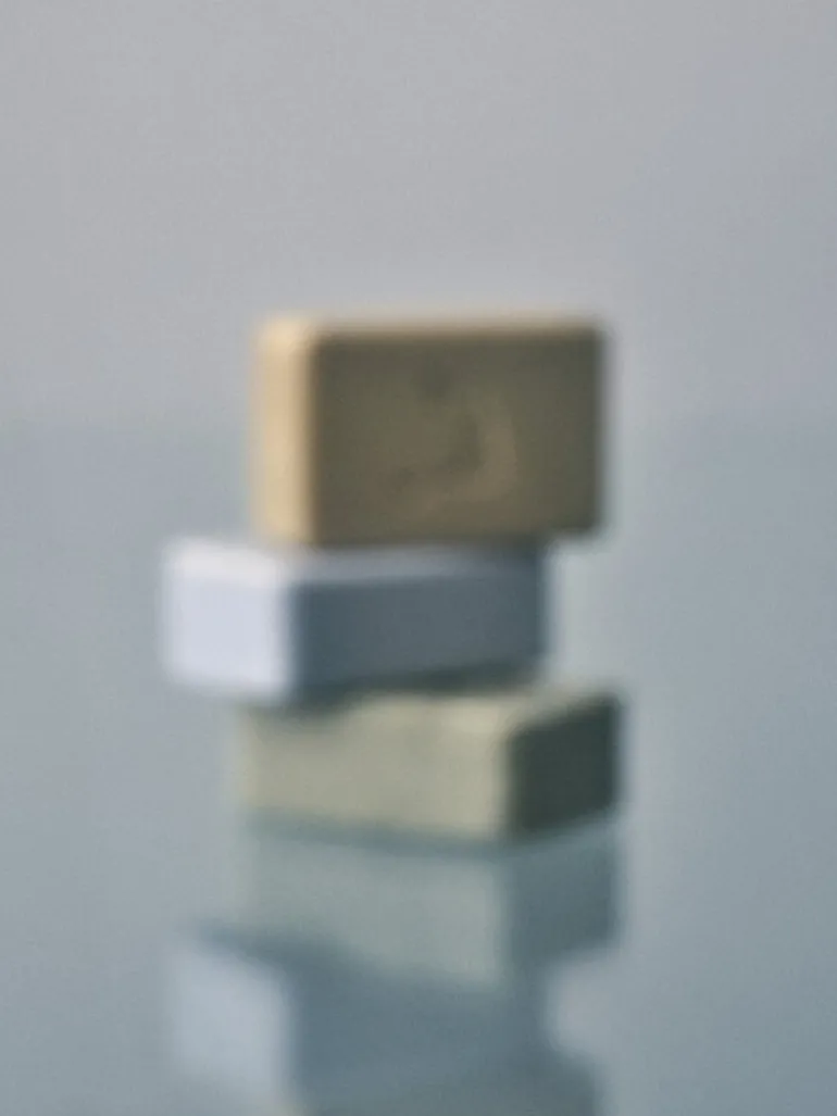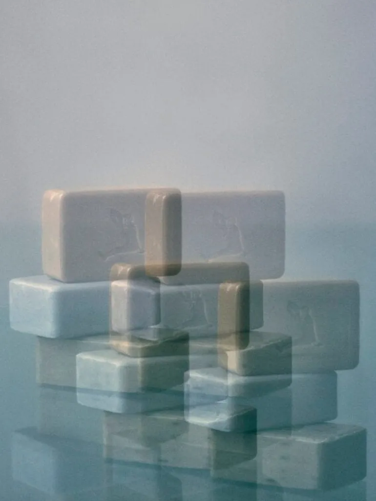 Den fasta tvålen Mnemonics uppfriskande doft har fått namnet After the Rain, och den fångar den rofyllda stämning som råder i skogen efter regn. Doften, som hämtat inspiration från marken i skogen och nedfallna tallbarr, innehåller varma noter av balsamgran, cederträ och en aning kardemumma. Den fasta tvålen är inpackad i svartvitt papper, vars fascinerande mönster är avsiktligt förvrängt – som ett diffust minne.