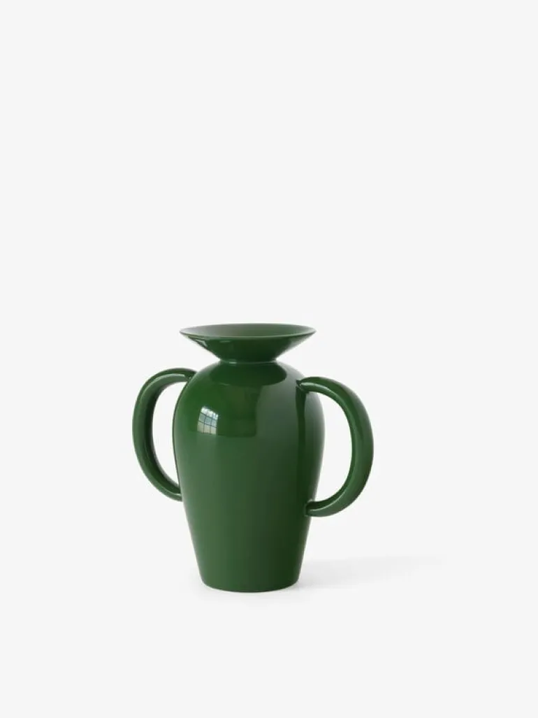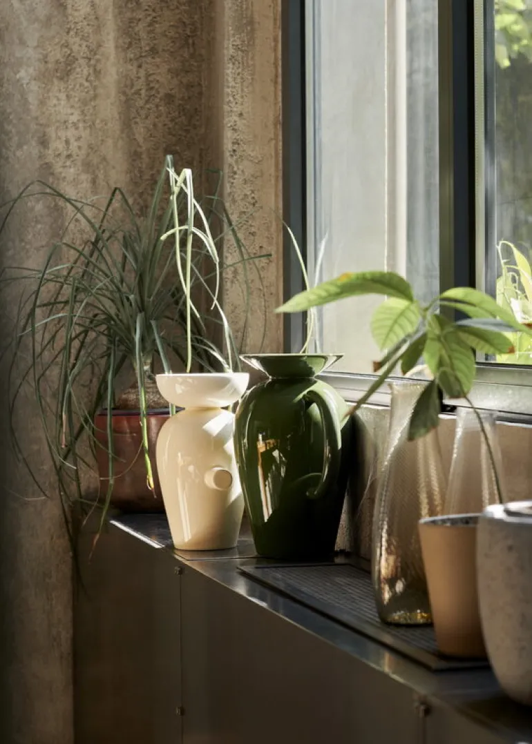 Med sina konstfulla drag och sin anslående silhuett är vasen Momento från &Tradition nästan lika lätt att känna igen som konstverken av den spanske konstnären och formgivaren Jaime Hayón. Den här lite småknasiga vasen har en utstuderad grafisk prägel, men denna tonas ner av den smaragdgröna färgen, inspirerad av de fräscha, livfulla nyanserna som finns ute i naturen.