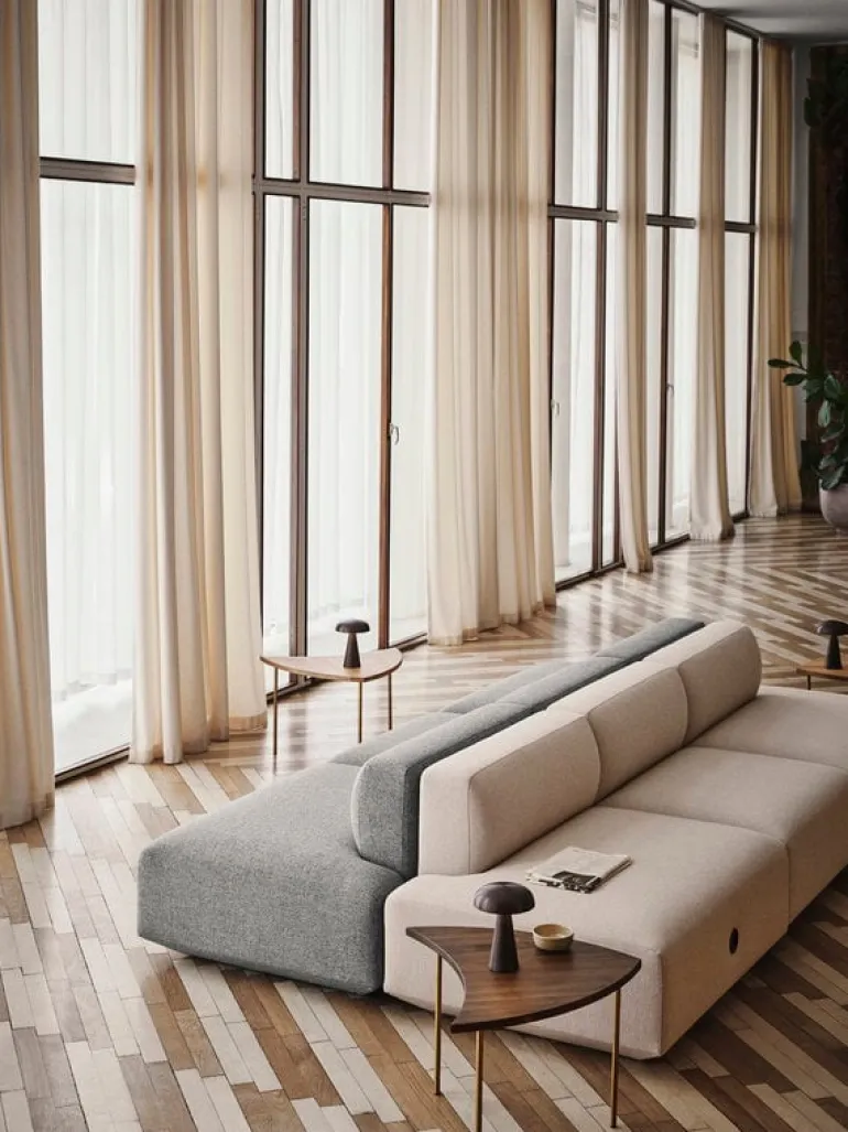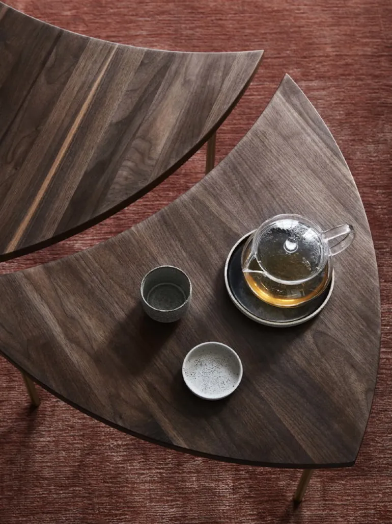 Sidobordet Pinwheel från &Tradition kännetecknas av en smäcker struktur och en ovanlig form. Pinwheels bordsskiva påminner om en pilspets och gör att två eller flera bord kan placeras tillsammans i olika arrangemang. Till exempel kan sex bord tillsammans skapa en perfekt cirkel! Det kan användas som sidobord eller soffbord, och designen är gjord 1953 av Hvidt & Mølgaard.