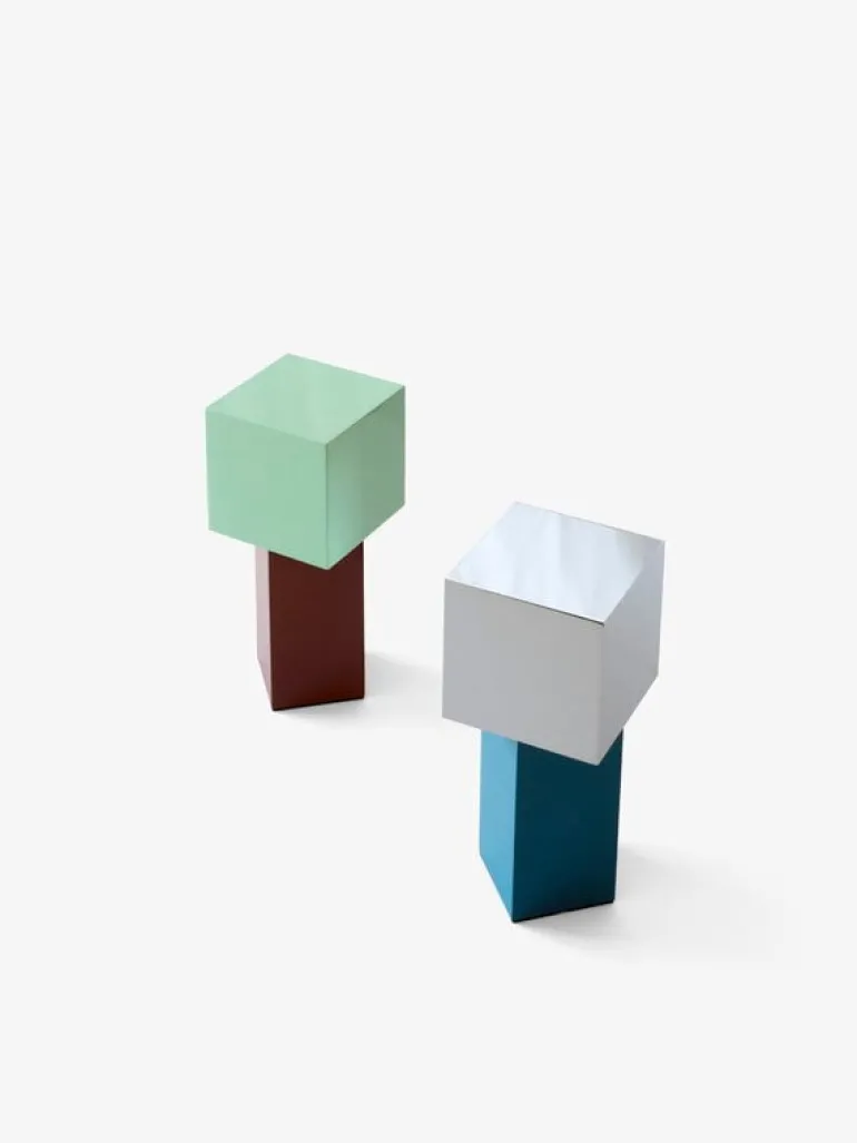 Den bärbara bordslampan Pivot från &Tradition fyller ditt hem med en blandning av livfulla färger, ljussken och fascinerande geometri. Den närmast futuristiska designen gör att Pivot-lampan blir ett riktigt blickfång i rummet. Bordslampan, som är tillverkad av robust, rostfritt stål, består av en skärm som för ovanlighetens skull är vriden i 45 graders vinkel i förhållande till foten. Bordslampan sprider ett milt sken runt omkring sig som ger en värmande känsla, nästan som från lågan på ett ljus.