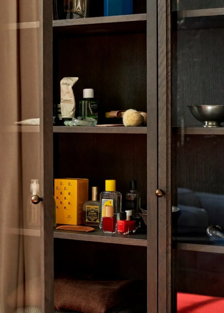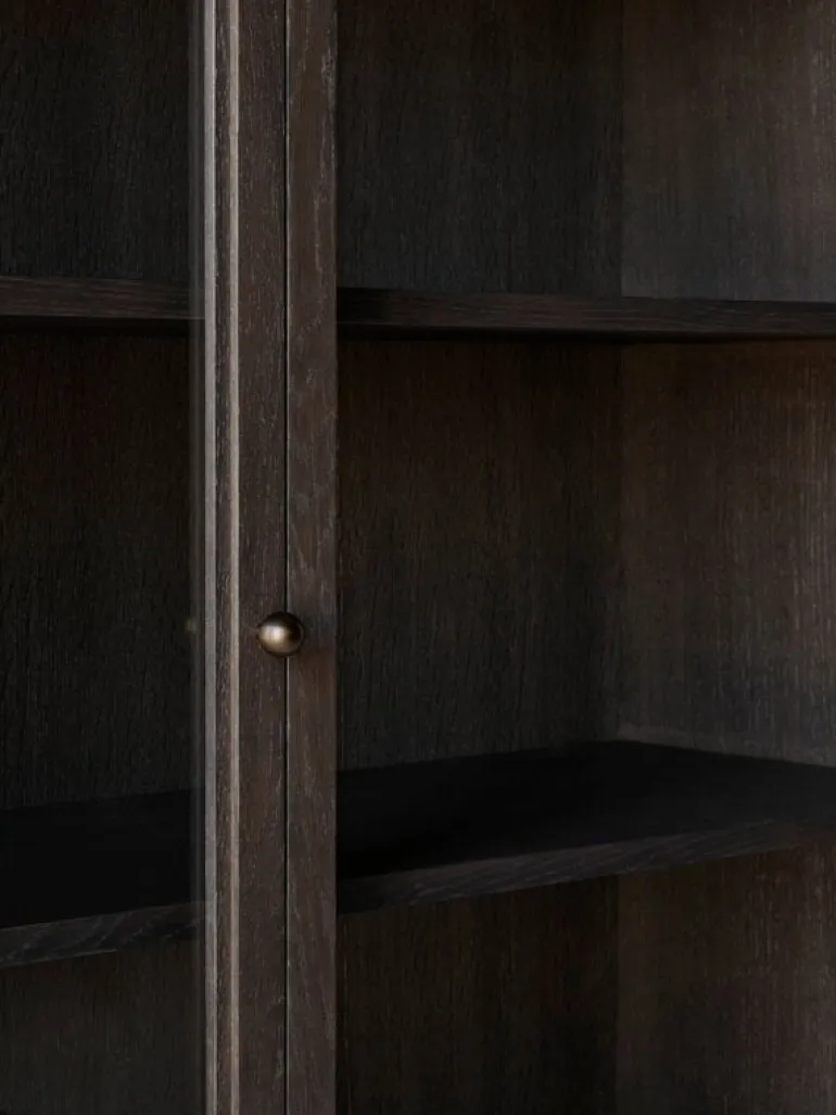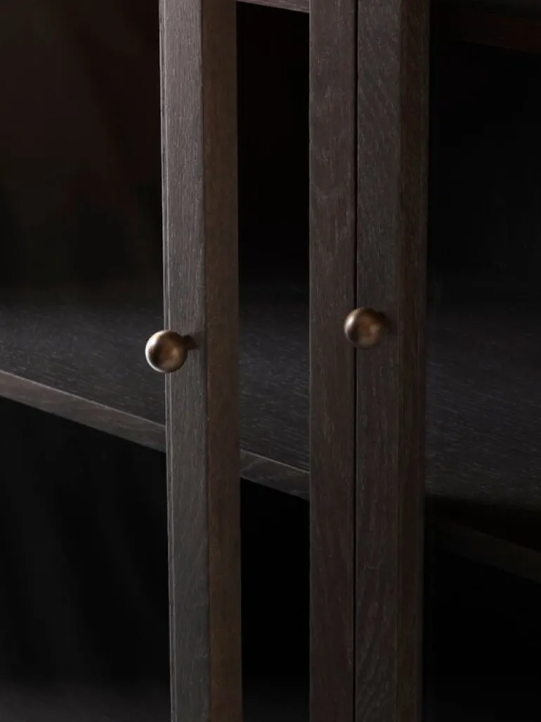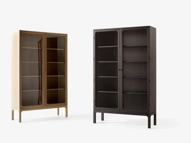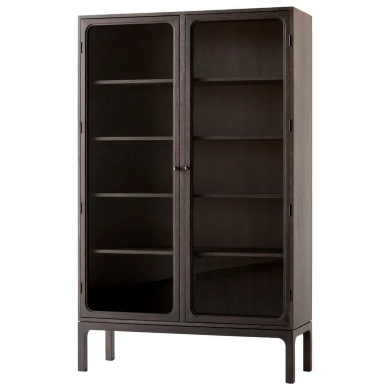 Skåpet Trace Double från &Tradition visar upp dina mest minnesvärda ögonblick i livet och andra små skatter som du har där hemma. Skåpet Trace Double SC88, som formgivits av Space Copenhagen, förenar modern estetik med tidlös design – resultatet är ett smäckert, nedtonat skåp som passar perfekt i de flesta av bostadens rum, från köket till vardagsrummet och sovrummet. Det rymliga förvaringsskåpet har fem hyllplan och två glasdörrar, genom vilka prydnader, böcker och porslin kan beskådas i all sin prakt. De runda, bronspläterade stålknopparna och mässingsgångjärnen gör skåpet Trace Doubles eleganta stil komplett.