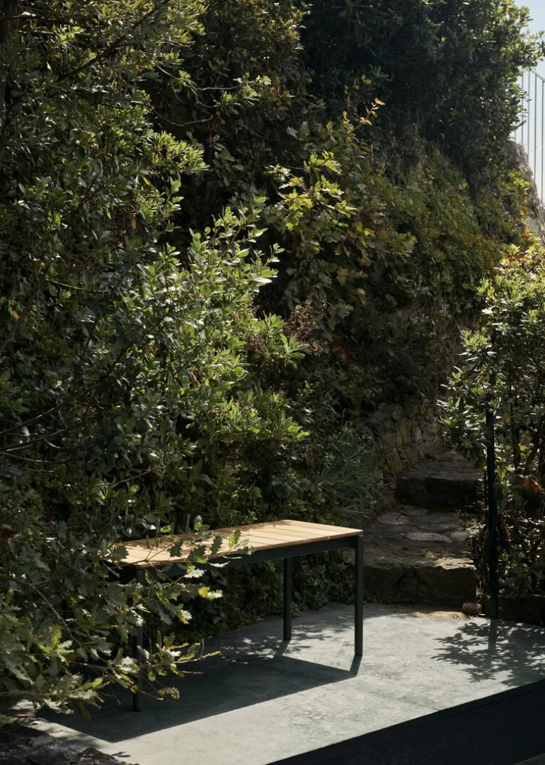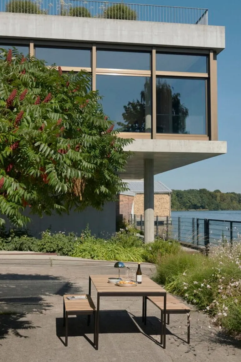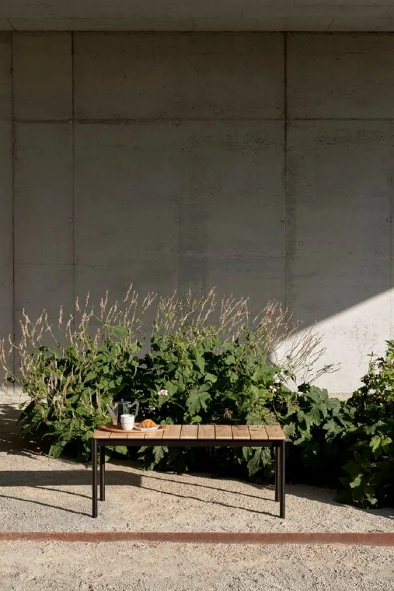 &Traditions bänk Ville AV27 består av en robust bänköverdel i teak kombinerat med en stålram med vackra linjer, allt i en skön balans mellan naturlig elegans och minimalistisk styrka. Teakträet ger utomhusbänken Ville en organisk framtoning, medan stålramen skapar en känsla av fräsch, grafisk robusthet. Du kan antingen låta teakträet patineras till en vacker, silvrig nyans eller behålla den varma färgen genom regelbundet oljning av träet. Om du önskar ett komplett set kan du kombinera Ville-bänken med ett matchande bord från samma serie.