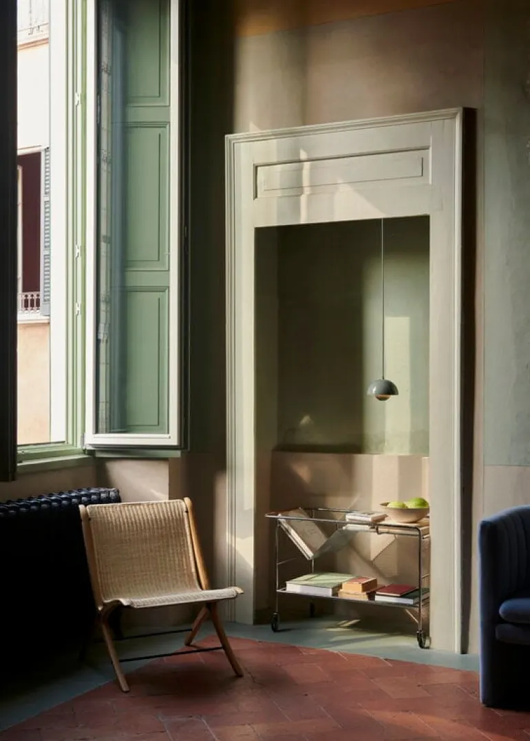 &Traditions fåtölj X HM10 är ett utmärkt exempel på dansk modernisms minimalistiska estetik. Den lätta, raffinerade stolen består av en sits i rotting och en smäcker träram, som ger stolen sin karakteristiskt X-formade silhuett – och även sitt namn. Fåtöljen X HM10 formgavs ursprungligen 1959 av Hvidt & Mølgaard. Den här stolen återspeglar särskilt tydligt duons passion för naturmaterial och rena linjer.