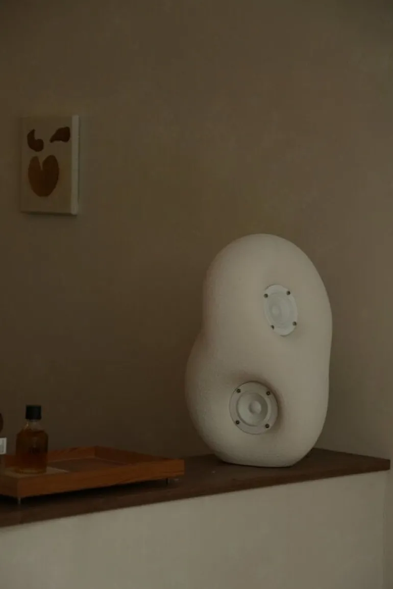 Transparent’s Acoustic Sculpture är en högtalare i premiumklass och en estetisk skulptur i ett. Den är handgjord för att efterlikna örats naturliga kurvor och är tillverkad av jesmonite – en giftfri, hållbar mineral- och akrylblandning som utvecklades på 1980-talet. Tack vare sitt material och design förbättrar Acoustic Sculpture ljudet som högtalaren ger ifrån sig och förbättrar stereoseparationen.