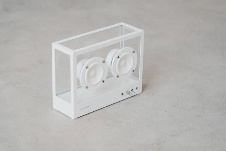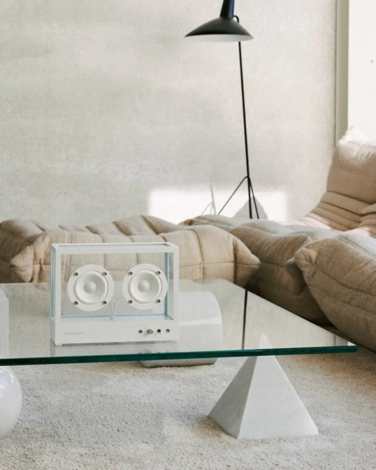 Låt dig inte luras av storleken – Transparent Small Transparent Speaker är visserligen liten, men den har en rejäl kapacitet! Tack vare Transparents unika ljudteknologi levererar den kompakta högtalaren enastående ljudkvalitet tillsammans med en överraskande skulptural design. Tillverkad av härdat glas och aluminium smälter den transparenta, minimalistiska designen in i alla rum och inredningsstilar.