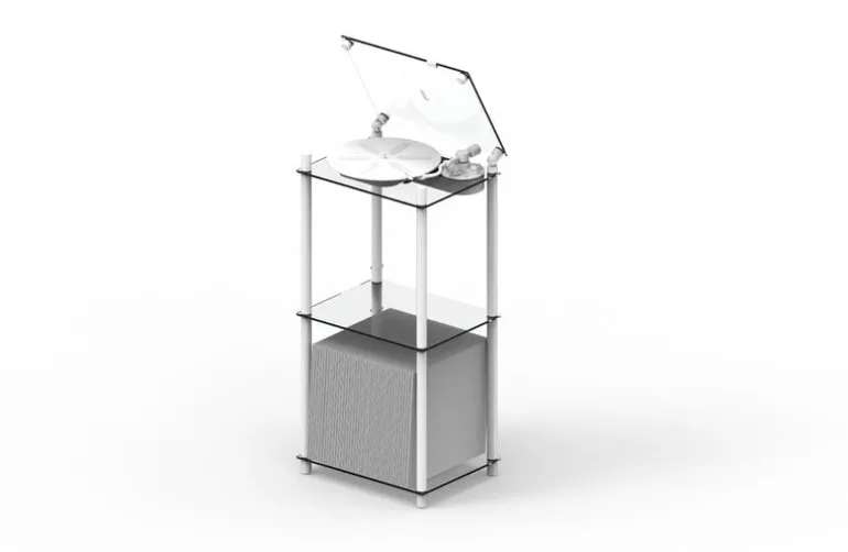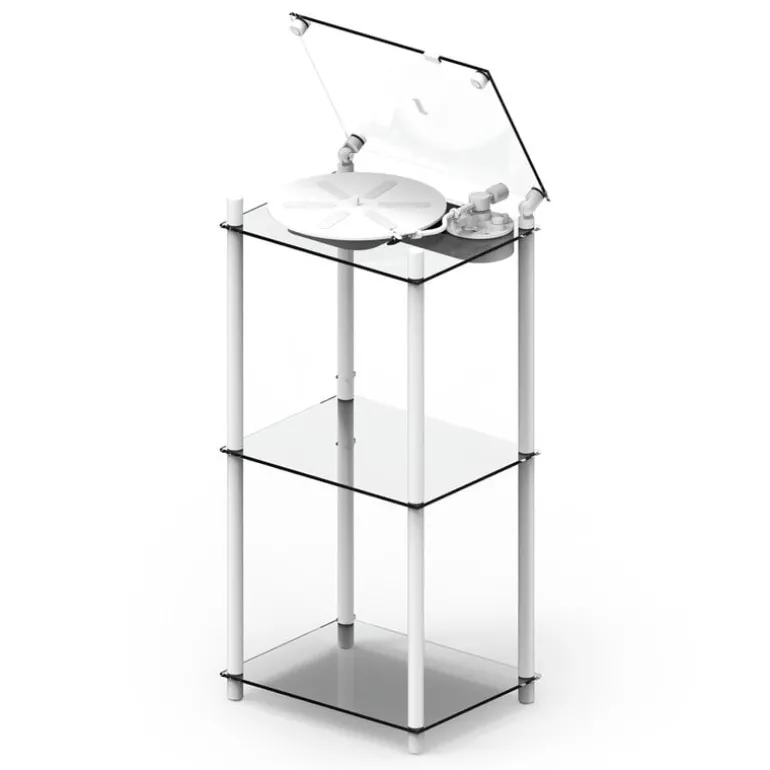 Transparent’s Turntable Stand tar din musikupplevelse till nästa nivå. Stället är designat för att passa perfekt till Transparent Turntable, och erbjuder även plats för upp till 140 vinylskivor – eller så kan du använda hyllorna för att visa upp andra föremål om du föredrar det! Det vackert minimalistiska, transparenta stället är tillverkat av aluminium och härdat glas, vilket gör det till ett elegant och stilrent tillskott i alla rum.