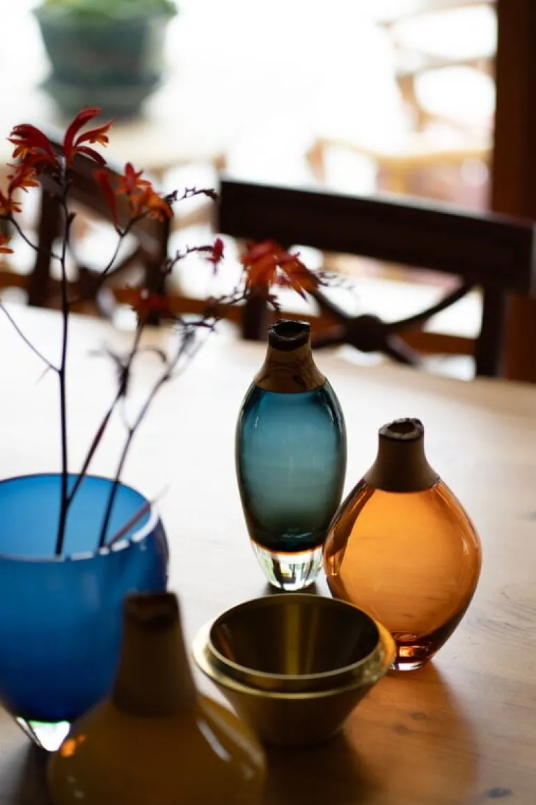 Kollektionen Stacking Vessels hyllar lokalt hantverk, alla delar tillverkas i Europa: glaset är munblåst i Tjeckien, träbitarna är handdrejade i Finland och metallbitarna är handgjorda i England. Slutmonteringen sker i Utopia & Utilitys eget lager i norra Tyskland. De skickligt tillverkade Stacking Vessels ger en fängslande touch till varje hylla eller matbord och är ett perfekt val som minnesvärd present.